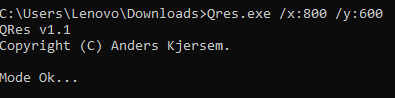 2. Kemudian masukkanlah command line sebagai berikut ini : “QRes.exe /x:ukuran panjang layar/y:ukuran lebar layar” lalu tekan Enter. Contoh : QRes.exe /x:800/y:600